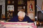 韩老八十八岁高龄仍讲经说法 ,右上图为韩老坐上三轮车 去讲堂。 1998年