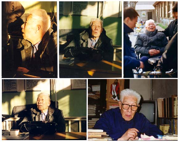 韩老八十八岁高龄仍讲经说法 ,右上图为韩老坐上三轮车去讲堂。